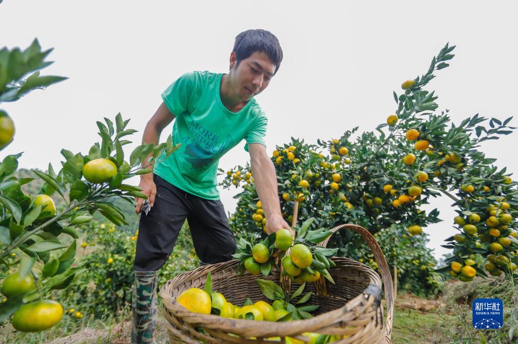 9月20日,在貴州省獨山縣下司鎮新同村,“90后”果農李東在自家柑橘園中采摘柑橘。李東家種植柑橘50余畝,今年預計產出新鮮柑橘20萬斤。