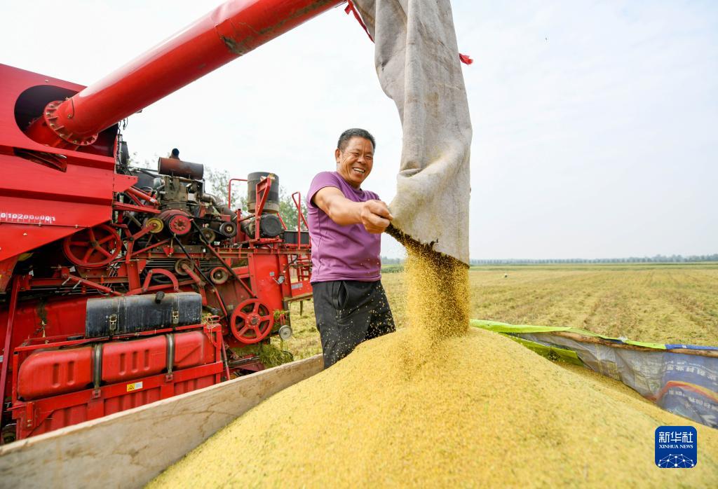 9月21日,在河南省洛陽市伊濱區寇店鎮二教塔社區,“60后”種植戶王志榮將收獲的谷子裝車。最近,王志榮種植的162畝谷子迎來豐收。