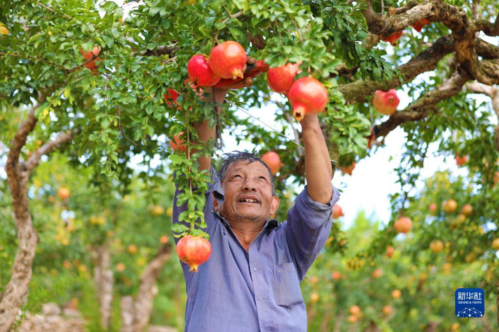9月19日,山東省棗莊市嶧城區榴園鎮,“60后”果農趙夫忠在采摘石榴。趙夫忠從事石榴種植近20年,最近他種植的石榴再次迎來豐收。