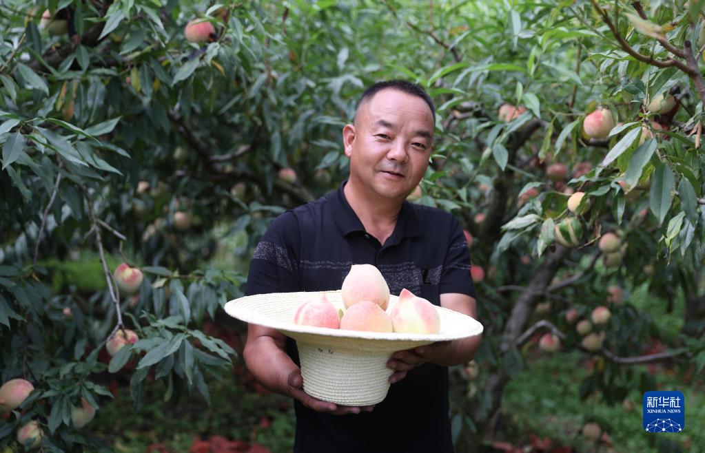 9月19日,在云南省巍山縣廟街鎮營盤村,“70后”劉吉祥在采摘福桃。劉吉祥2013年開始種植福桃,現在他的福桃基地已達150畝。