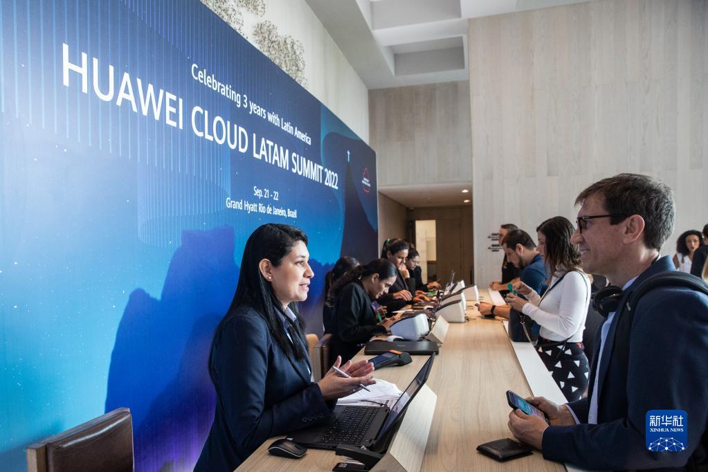9月21日,在巴西里約熱內盧舉行的華為云拉美三周年峰會上,參會代表向工作人員問詢。新華社記者 王天聰 攝