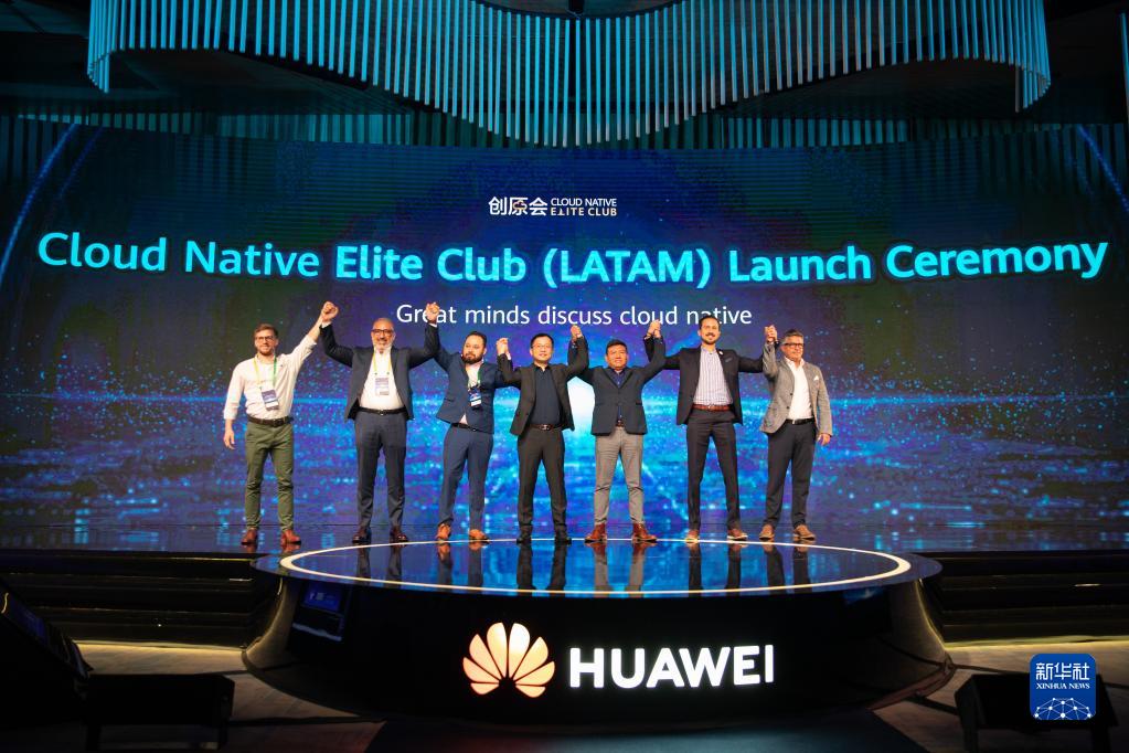 9月21日,參會代表在巴西里約熱內盧舉行的華為云拉美三周年峰會上合影。新華社記者 王天聰 攝
