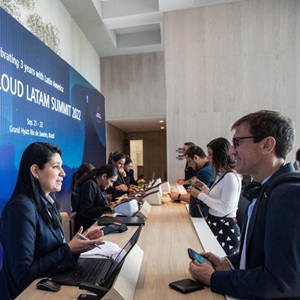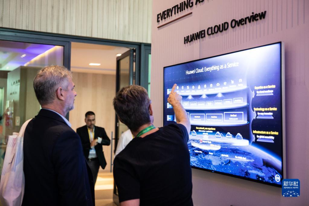 9月21日,在巴西里約熱內盧舉行的華為云拉美三周年峰會上,參會代表觀看華為云技術介紹。新華社記者 王天聰 攝