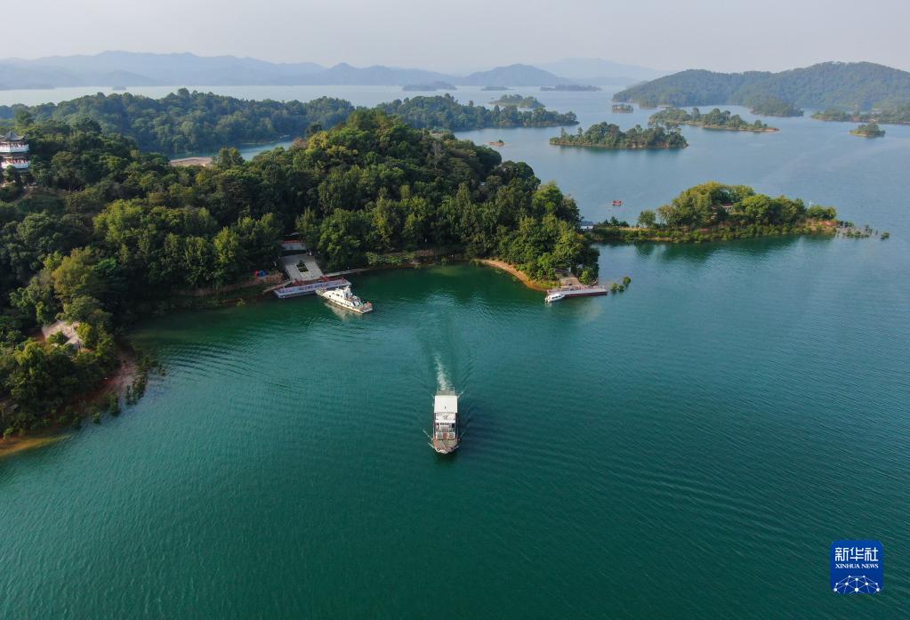 萬綠湖建于1958年,又名新豐江水庫,位于廣東省河源市東源縣境內,因湖水常綠得名,水域面積達370平方公里,水質優良。