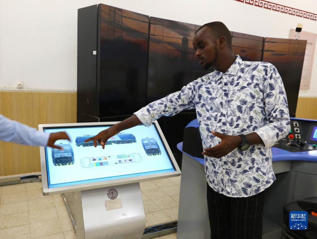 9月19日,在位于吉布提首都吉布提市的吉布提工商學校,學生在魯班工坊使用電子觸摸屏。