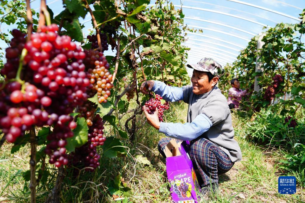 9月24日,在惠民縣胡集鎮惠臺葡萄專業合作社,村民在采摘葡萄。