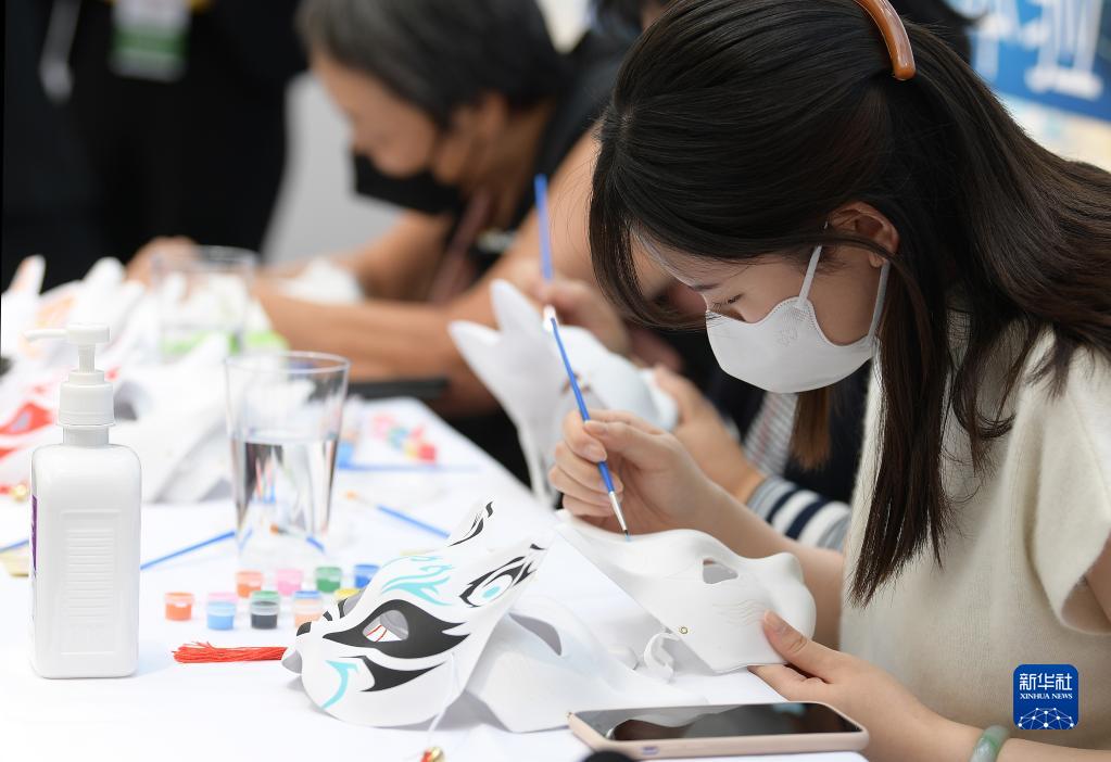 9月24日,游客在活動現場體驗日式風格手工繪制。