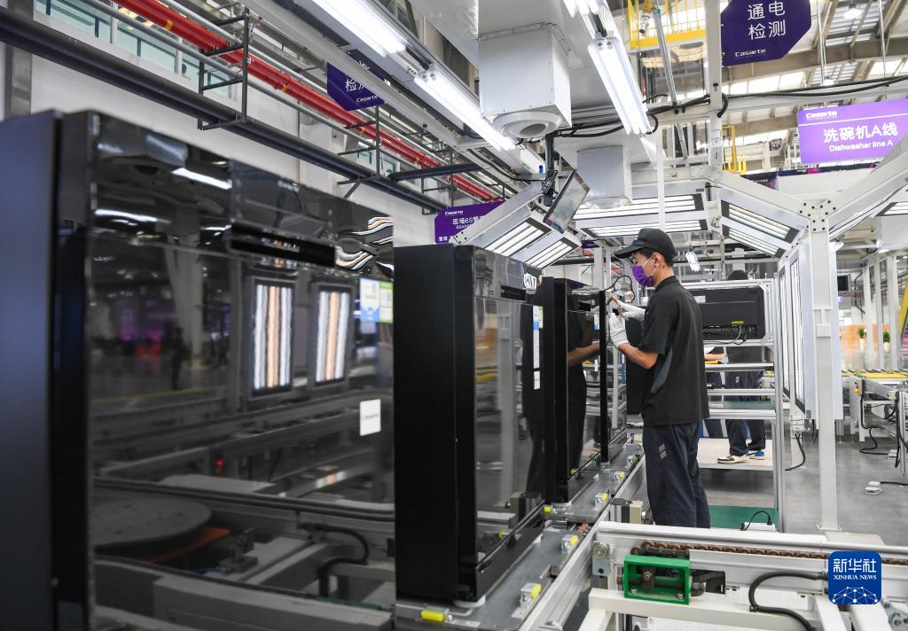 9月25日,工人在重慶海爾洗碗機互聯工廠作業。