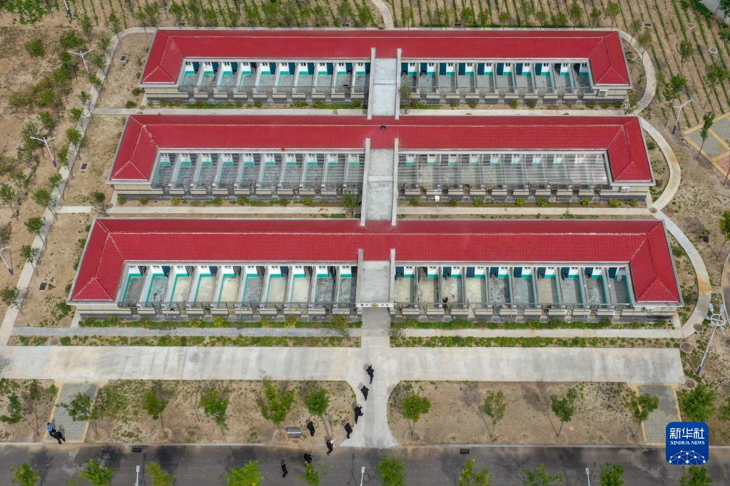山東省聊城市公安局警犬訓練基地標準化工作犬犬舍(9月24日攝,無人機照片)。