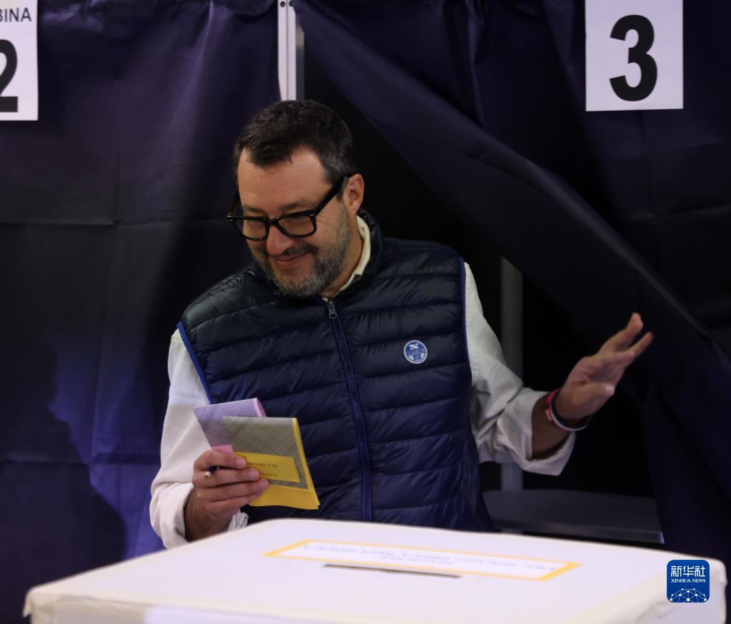 9月25日,意大利聯盟黨黨首薩爾維尼在米蘭的一處投票站準備投票。