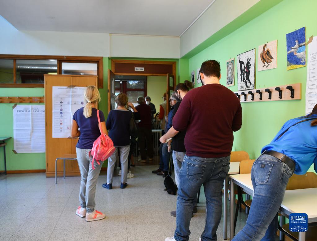 9月25日,選民在意大利羅馬一處投票站等待投票。