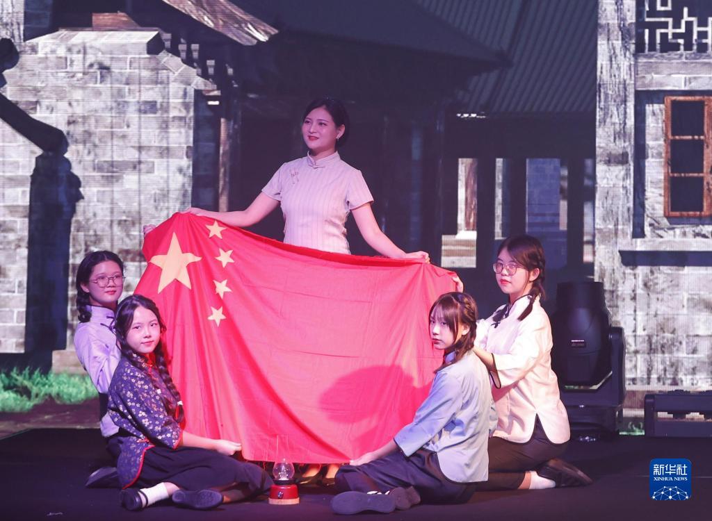 9月25日,演員演出以澳門升起第一面五星紅旗的真實故事為藍本改編的短劇《五星紅旗》。新華社發