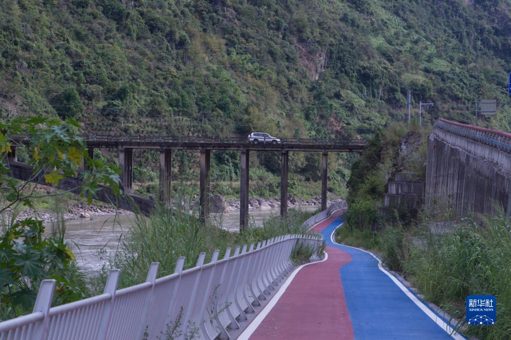 這是2022年9月13日拍攝的怒江沿線的“美麗公路”綠道和橋梁。新華社記者岑云鵬攝