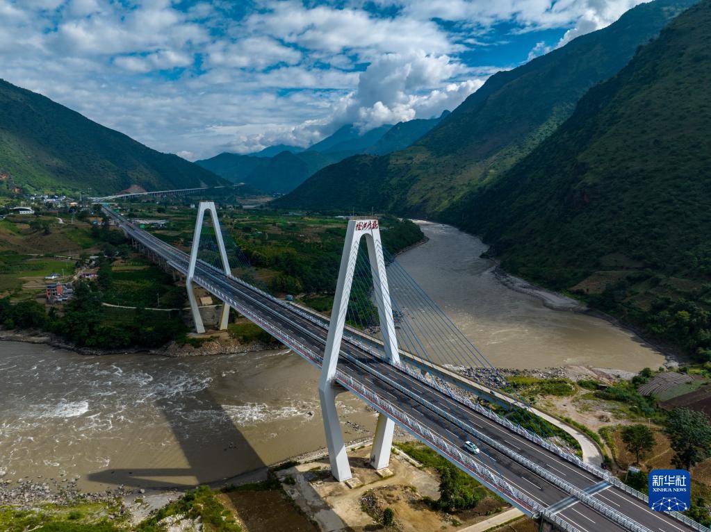 這是2022年9月15日拍攝的云南保(山)瀘(水)高速怒江大橋。該高速是怒江州的首條高速公路(無人機照片)。新華社記者 江文耀 攝