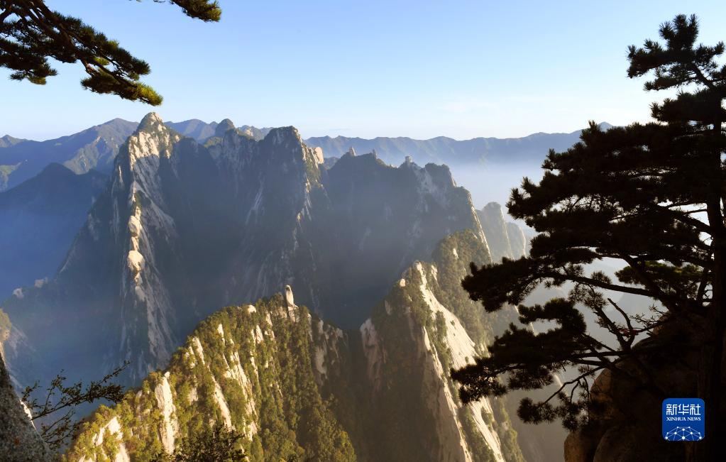 9月25日,夕陽西下,雨后初霽的西岳華山,云霧縈繞,宛如仙境(無人機照片)。