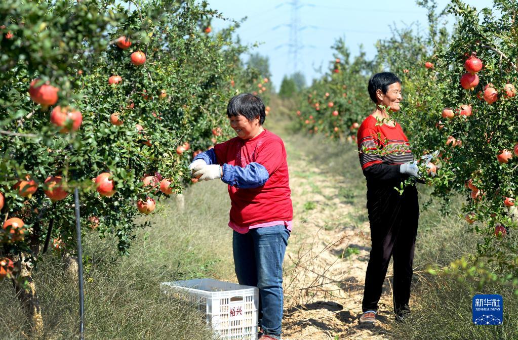9月26日,在陜西省潼關縣港口社區東臺塬,裕興農業開發有限公司的員工在采摘軟籽石榴。