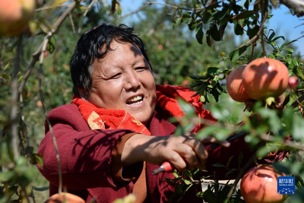 9月26日,在陜西省潼關縣港口社區東臺塬,裕興農業開發有限公司的員工在采摘軟籽石榴。