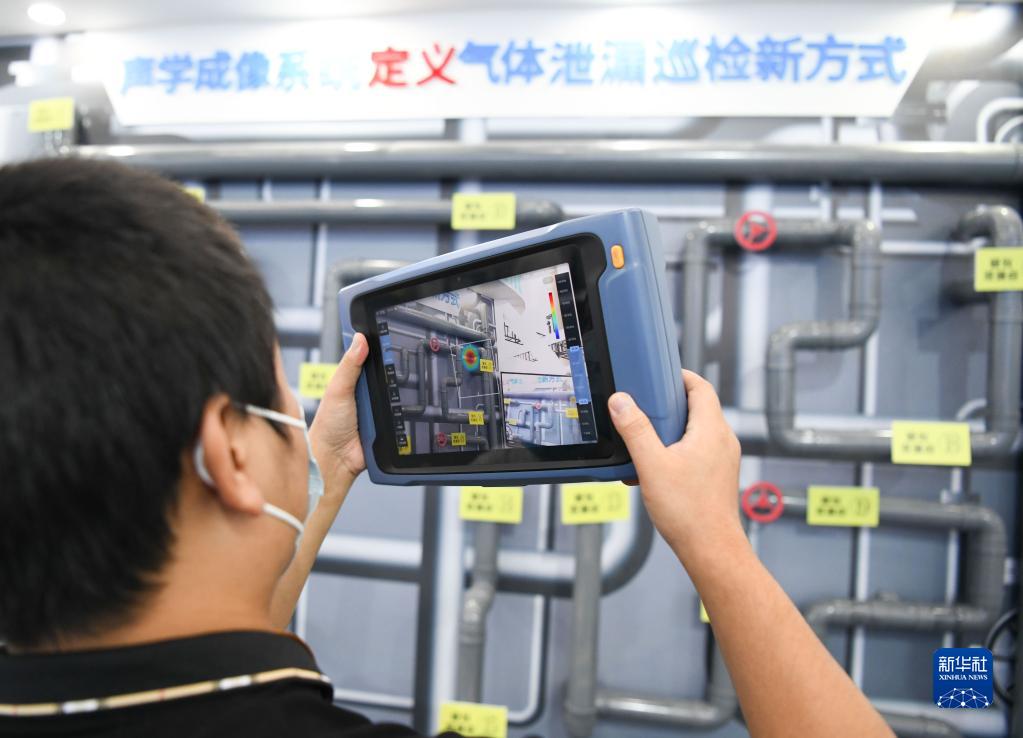 在安徽合肥舉辦的2022世界制造業大會上,參展人員在操作一款用于氣體泄漏巡檢的聲學成像儀(9月22日攝)。