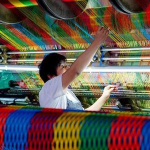 9月25日,在惠民縣李莊鎮繩網特色產業園,工作人員在加工繩網制品。