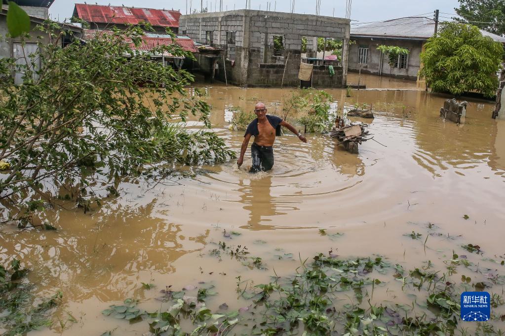 9月26日,在菲律賓布拉干省,一名男子涉水出行。