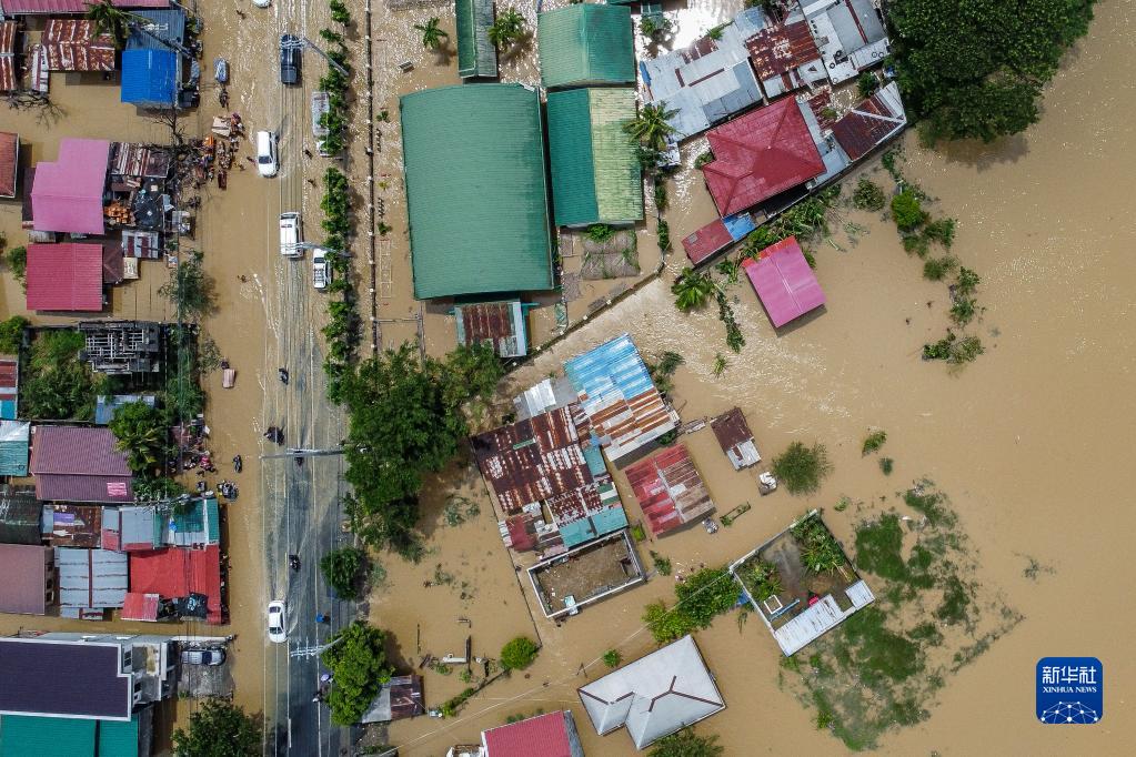 這是9月26日在菲律賓布拉干省航拍的遭洪水侵襲的區域。
