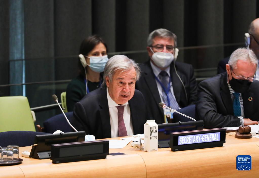 9月26日,在位于紐約的聯合國總部,聯合國秘書長古特雷斯(前左)在紀念“徹底消除核武器國際日”高級別會議上致辭。
