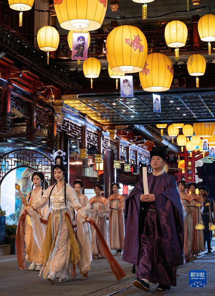 上海豫園商城上演國風主題表演“仲秋月神游”(9月23日攝)。