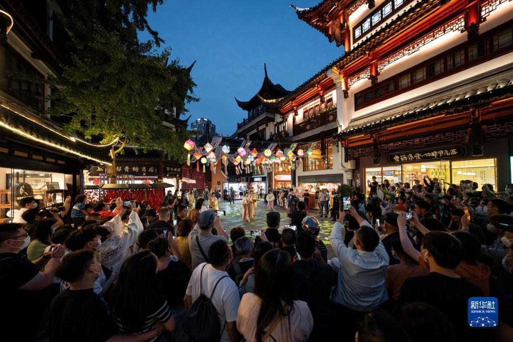 金秋時節,夜幕降臨的上海豫園商城上演江南仲秋游園場景,給市民和游客帶來一場浪漫的國風沉浸式體驗。