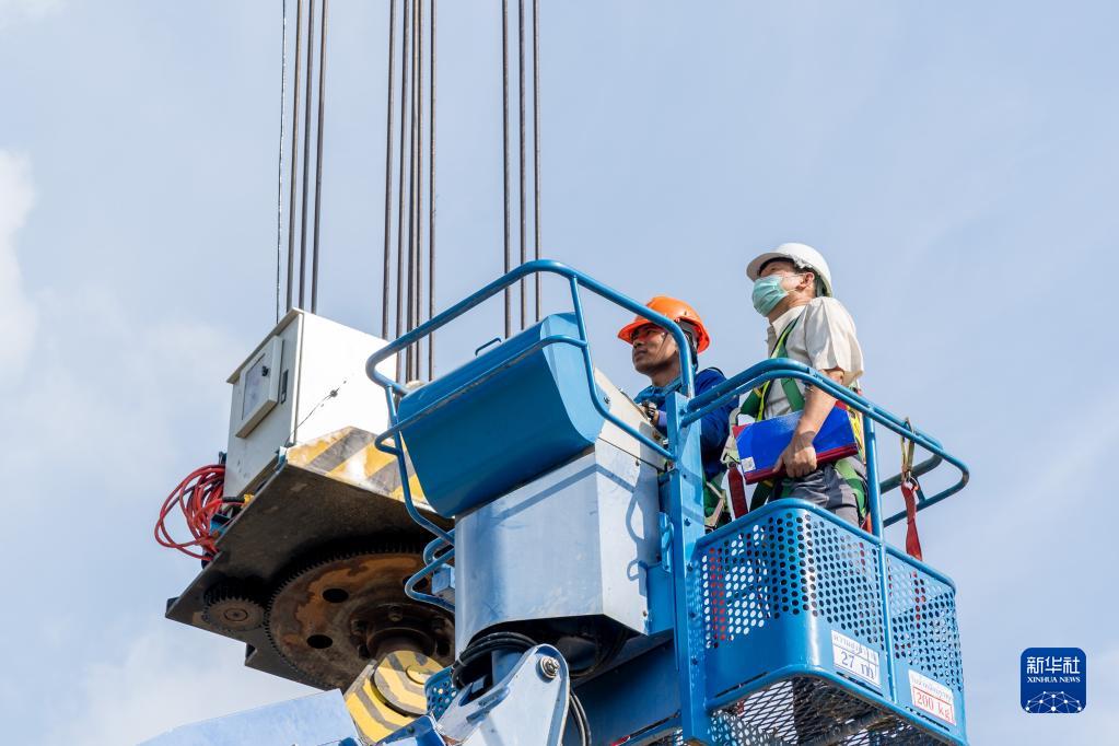 9月7日,在泰國呵叻,中泰鐵路項目部監理四組副組長威羅(右)在工作中。