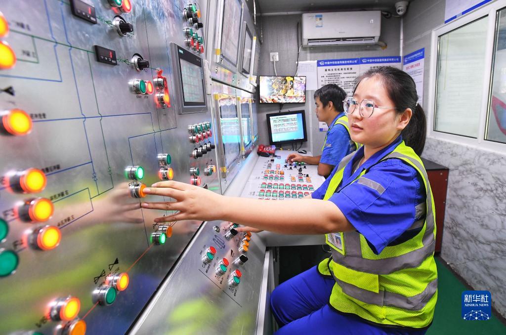 9月27日,“大灣區號”主司機楊涔(前)在操控室操控這臺直徑超過13米的巨型設備。
