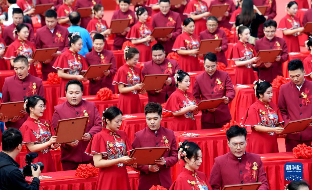 9月27日,新人們在集體婚禮儀式現場。