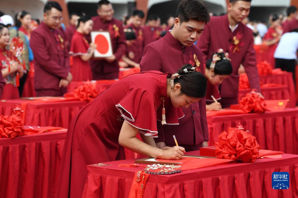9月27日,新人們在集體婚禮儀式現場。