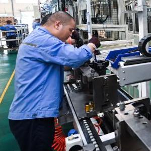 9月27日,在位于諸暨市店口鎮工業區的浙江萬安科技股份有限公司數字化車間內,工人在流水線上生產作業。