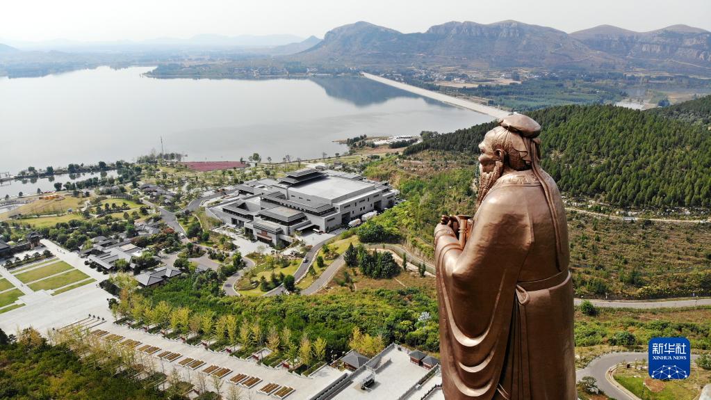 9月27日拍攝的曲阜尼山講堂(無人機照片)。