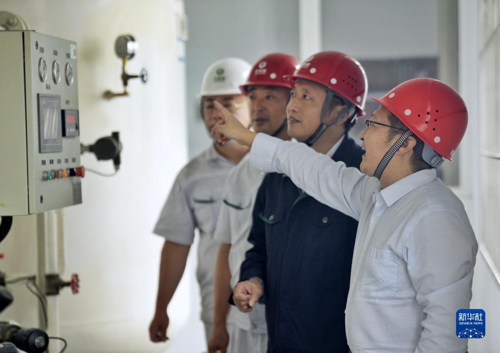 9月23日,在位于四川省眉山市的中央儲備糧眉山直屬庫,付鵬程(右一)為糧庫技術人員講解制氮設備操作使用程序。