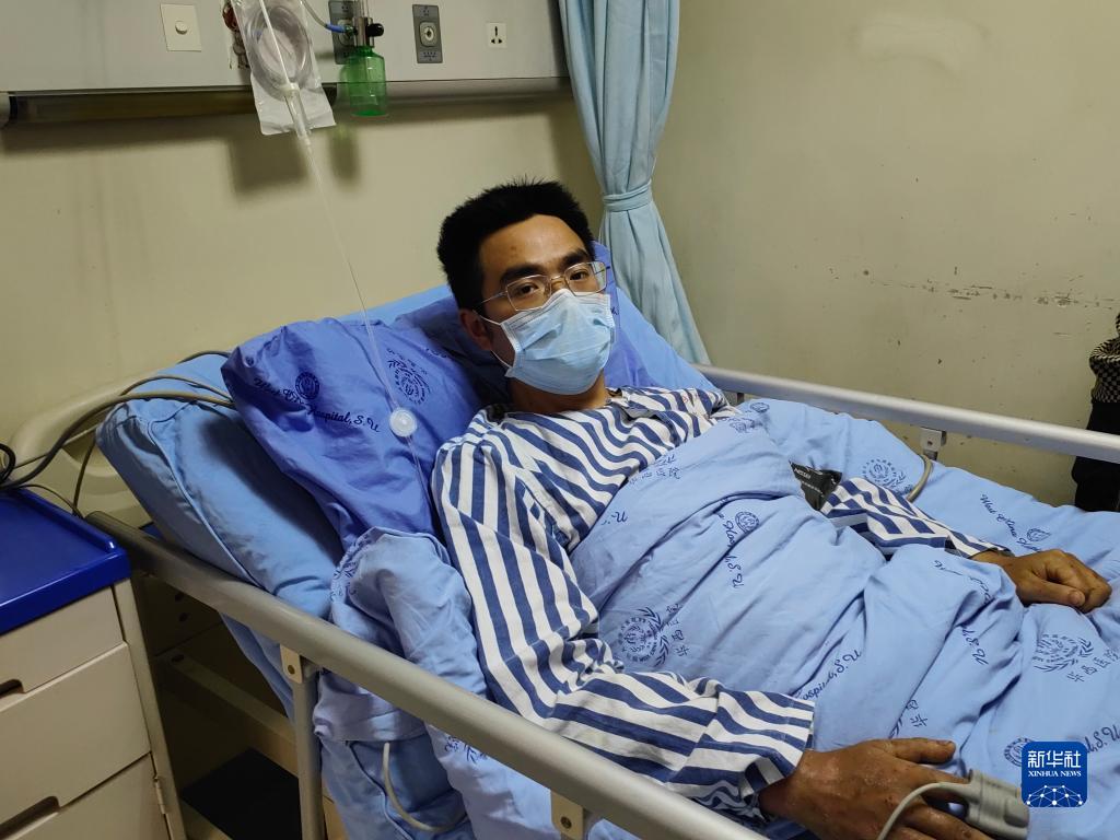 9月26日,在四川大學華西醫院創傷醫學中心普通病房里,甘宇在病床上休息。新華社記者 董小紅 攝