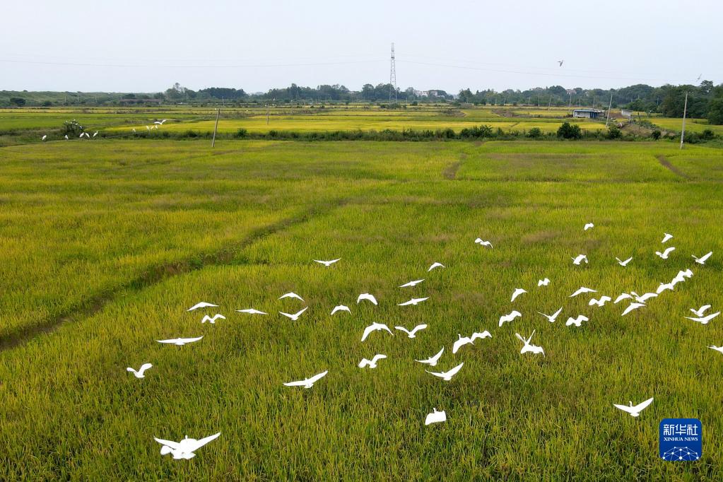 眼下正是秋收時節,在安徽省郎溪縣飛鯉鎮,稻香撲鼻,白鷺飛舞,一派金秋美麗景象。