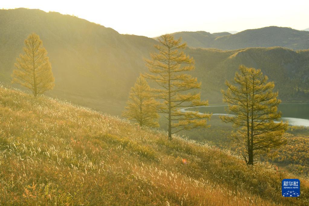 9月28日拍攝的扎蘭屯市柴河鎮同心天池秋日風光。