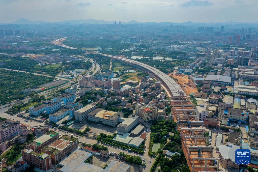 莞番高速貫穿東莞市十個鎮區,大量采用雙層橋設計有效節約建設用地(9月27日攝,無人機照片)。
