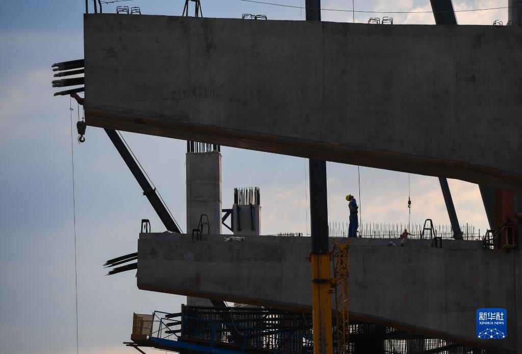 建設者在莞番高速寒溪河大橋施工(9月27日攝)。