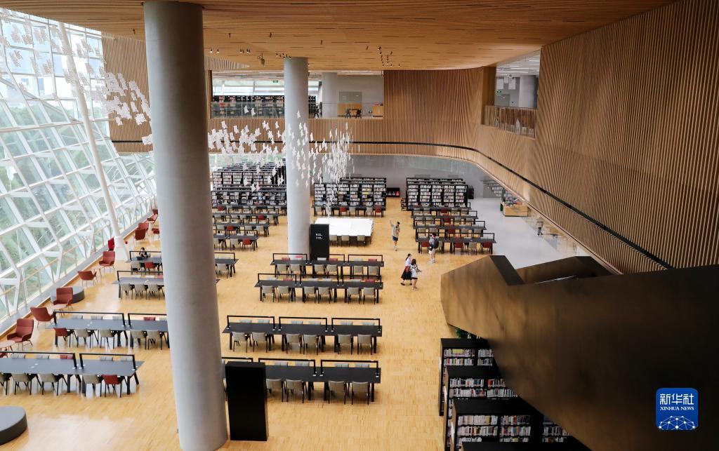 9月28日拍攝的上海圖書館東館南閱讀廣場內景。