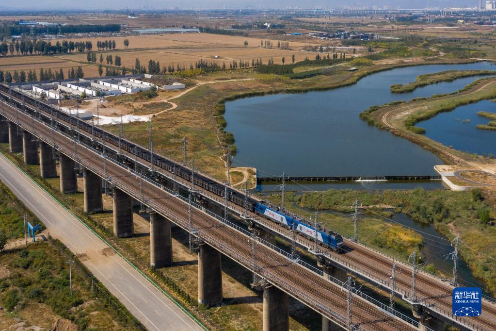 重載列車行駛在大秦鐵路上(9月28日攝,無人機照片)。