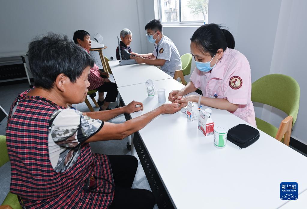 重陽節即將到來,浙江省諸暨市趙家鎮的鄉賢代表、婦女志愿者等在趙二自然村開展“愛心食堂·共享五?!被顒?,為數十名老人組織義診并準備了重陽愛心餐,還為9月生日的老人們舉辦集體生日會,迎接重陽節。