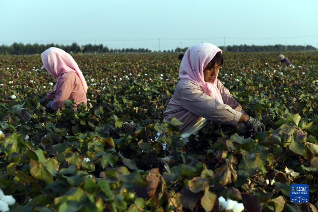 9月28日,山東省濱州市無棣縣西小王鎮棉農在采收新棉。