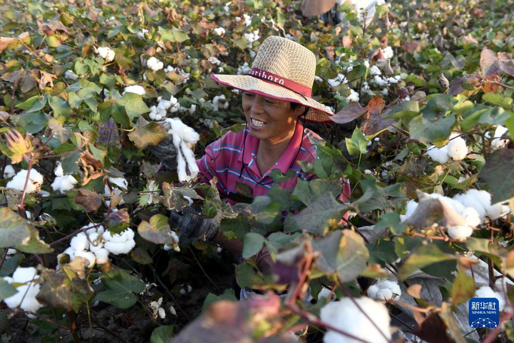 9月28日,山東省濱州市無棣縣西小王鎮棉農在采收新棉。