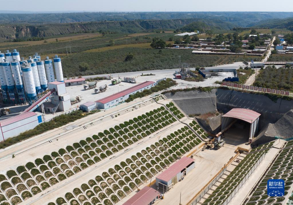 這是9月28日拍攝的位于陜西省延安市洛川縣的西延高鐵洛川隧道施工現場(無人機照片)。