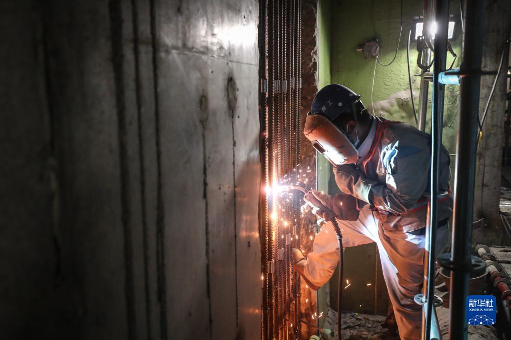 9月29日,工人在大連灣海底隧道內施工。 新華社記者 潘昱龍 攝