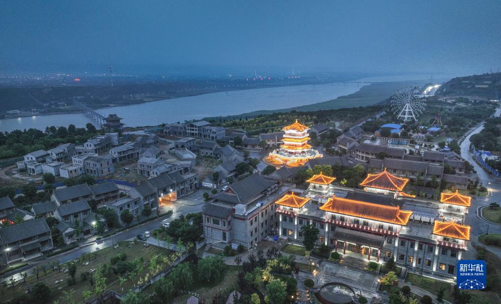 這是5月25日拍攝的夜色中的潼關古城景區(無人機照片)。