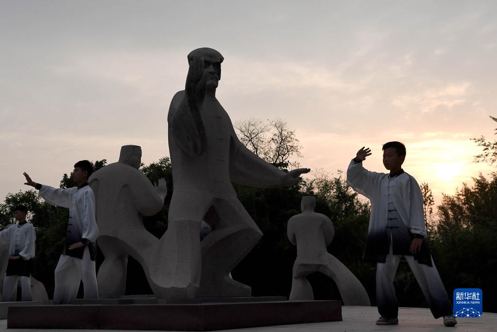 這是青少年在河南溫縣陳家溝太極拳祖祠內習練太極拳(2021年7月1日攝)。