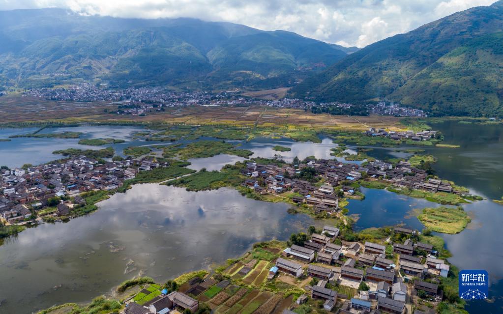 這是9月28日拍攝的洱源西湖一景(無人機照片)。